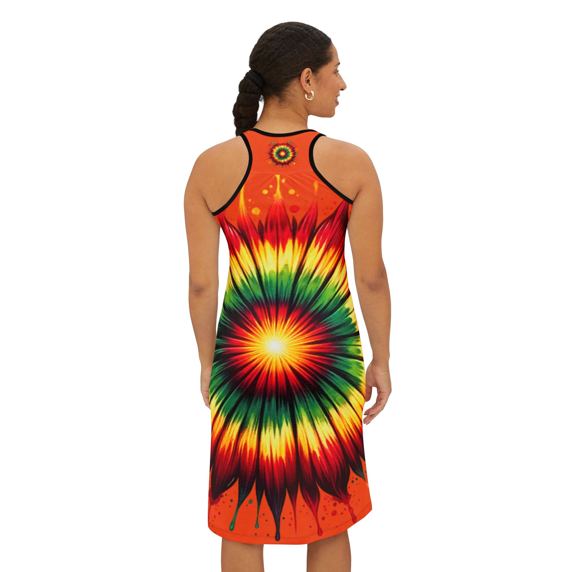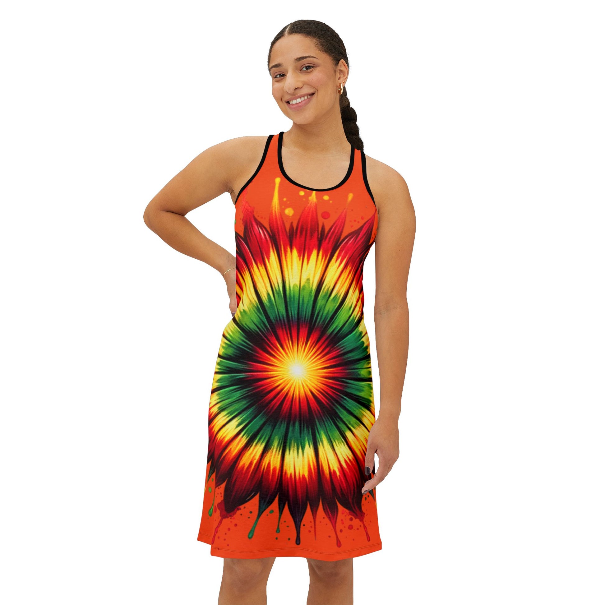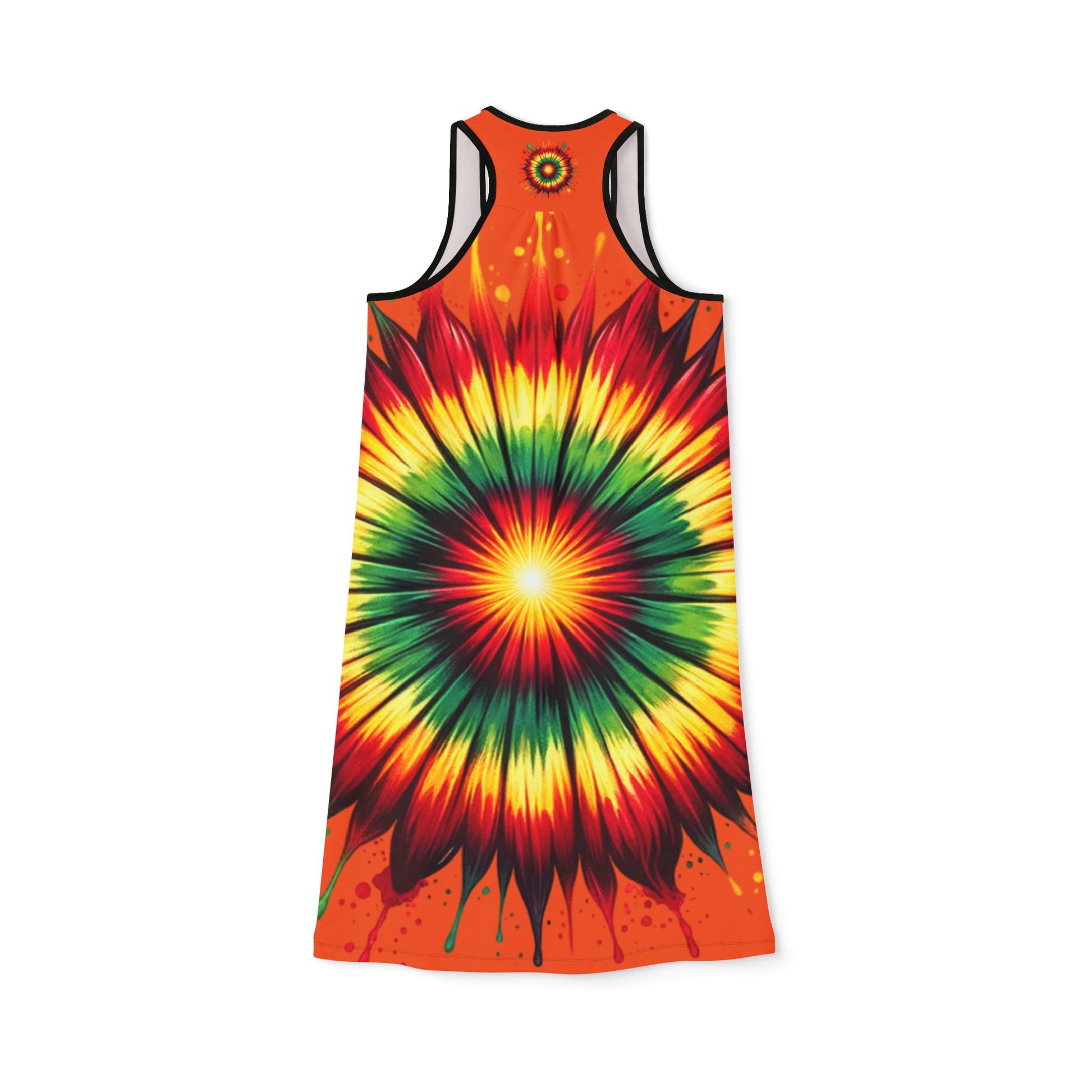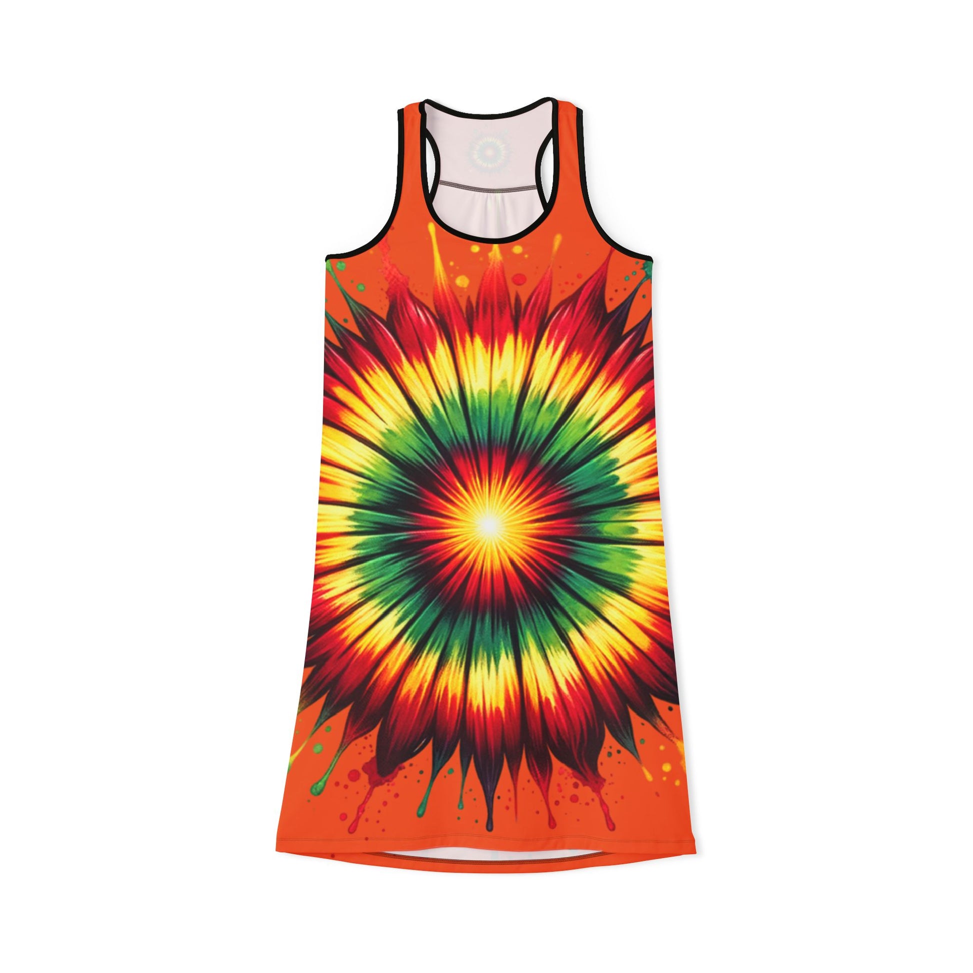 Vibrant Tie-Dye Racerback Dress, Summer Fashion, Beach Cover-Up, Festival Outfit, Boho Style Dress, Unique Gift Idea, Juneteenth Dress