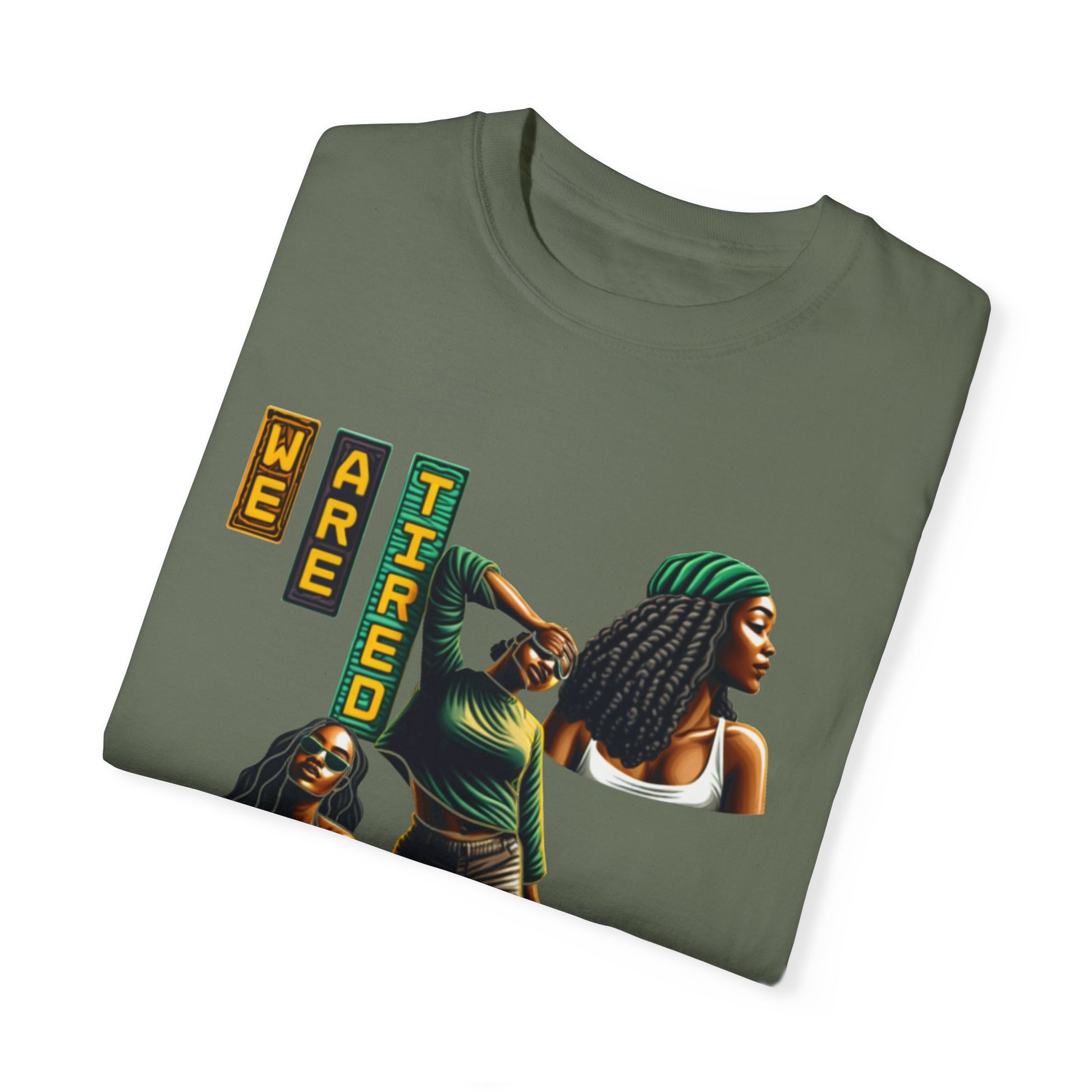 Comfort Colors introduces the “Comfort Colors 1717” "We Are Tired, Get Somebody Else to Do It!" highlights the undeniable power and influence of Black women voters in shaping and protecting democratic values. With striking visuals and impactful statistics, the image underscores the consistent dedication of Black women in standing at the forefront of civic engagement and political change. It serves as a reminder of the pivotal role black women play in securing justice, equity, and progress for all. This is a call to honor and acknowledge this contribution, ensuring their voices remain amplified and their impact celebrated.