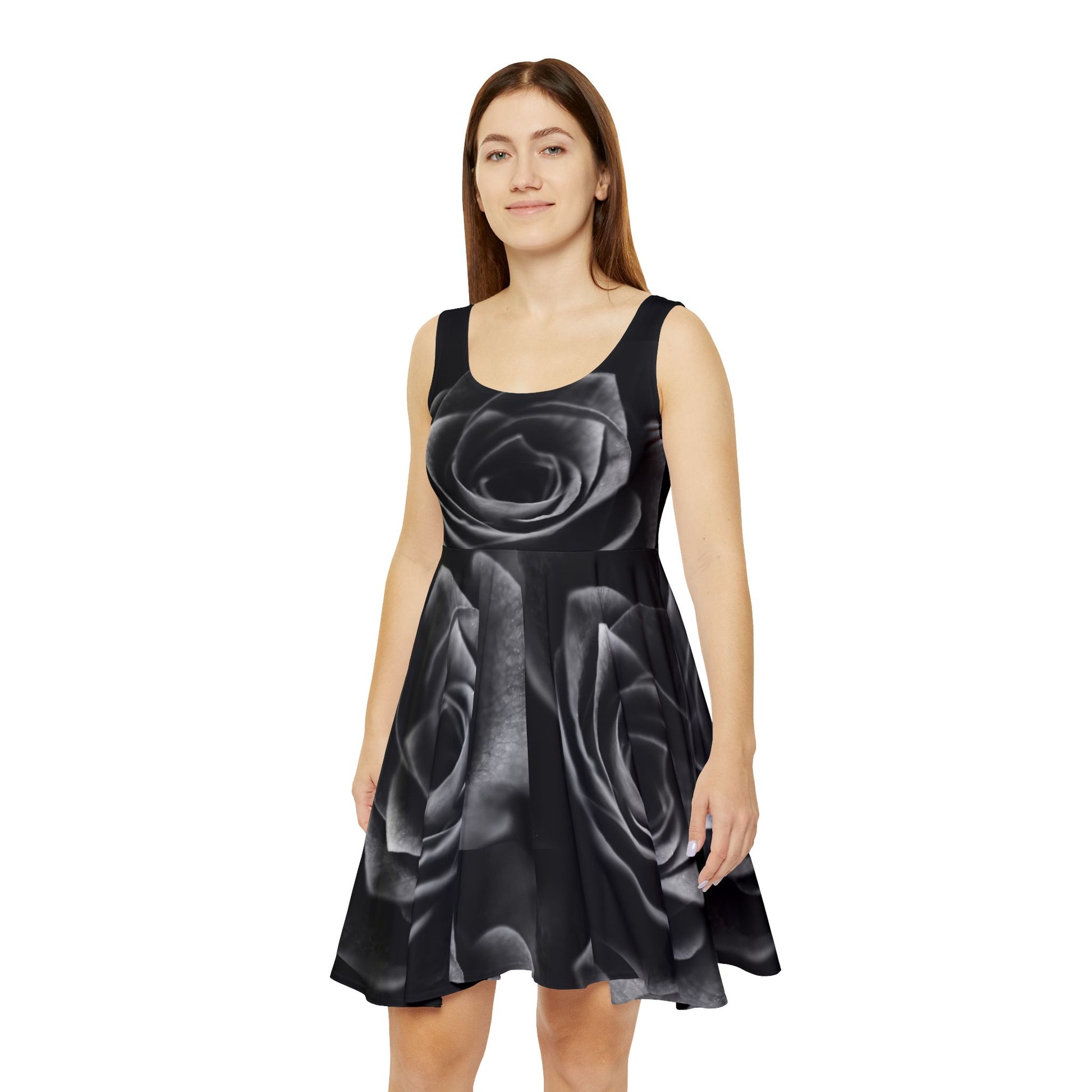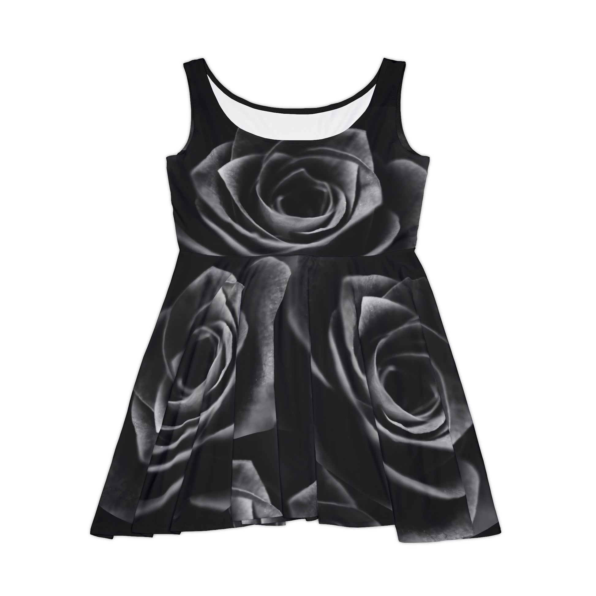 Whether it's hitting the town or lounging around, this black rose prints custom skater dress brings an unmatched flair to any woman's wardrobe. Made with a high-quality, 290gsm fabric blend that is 83% polyester, 17% spandex, it's comfy, stretchy and a perfect match to any occasion. This beautiful black rose print makes it an instant favorite for any day of the week.