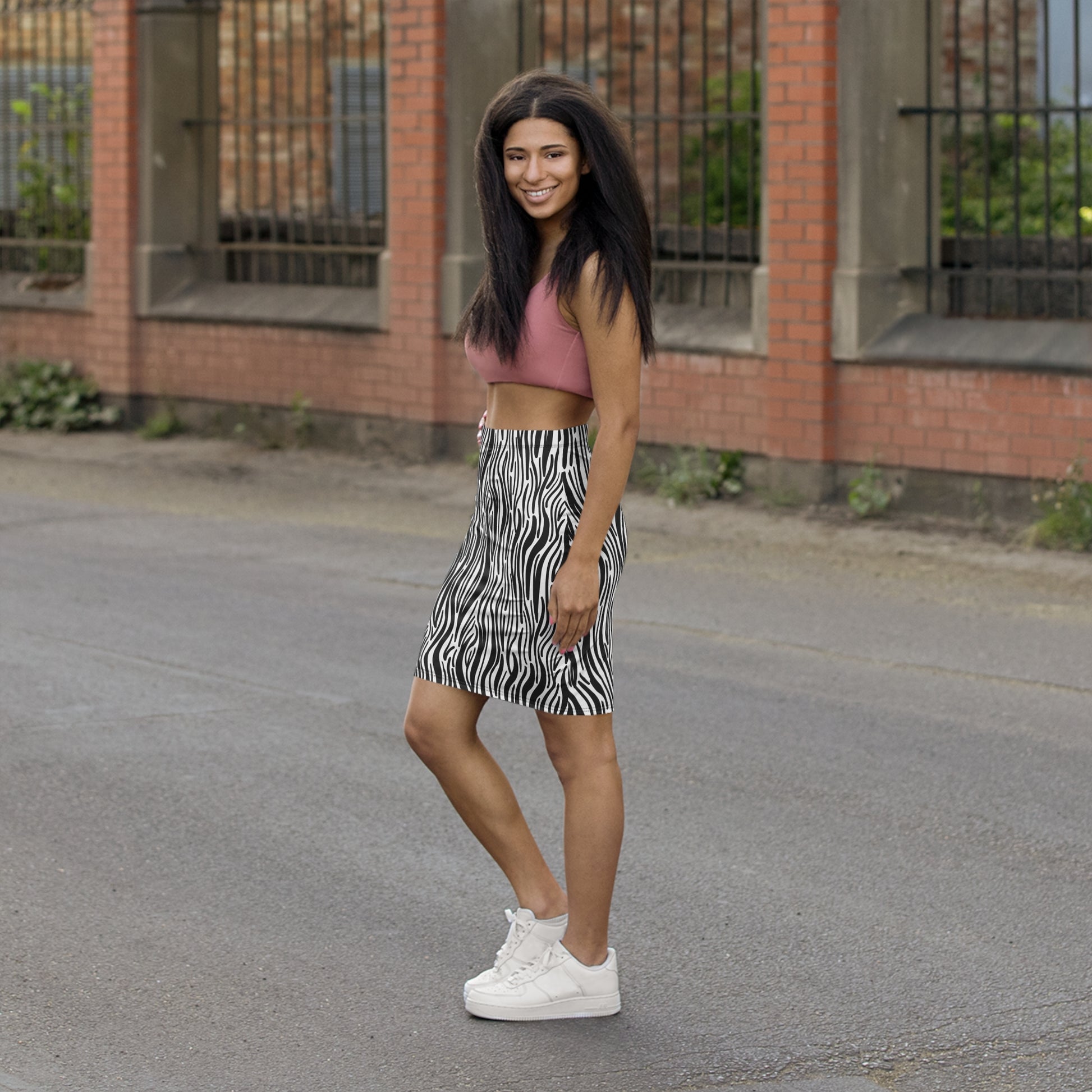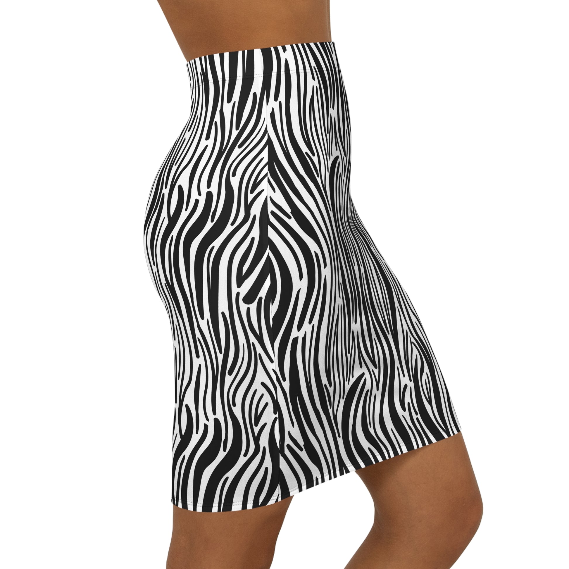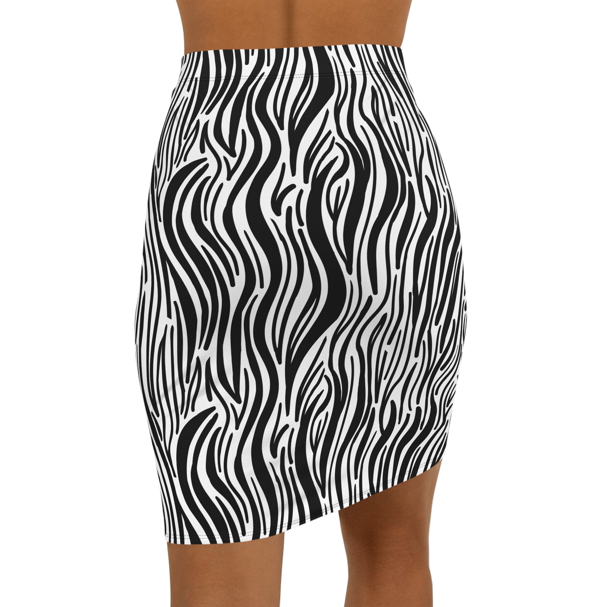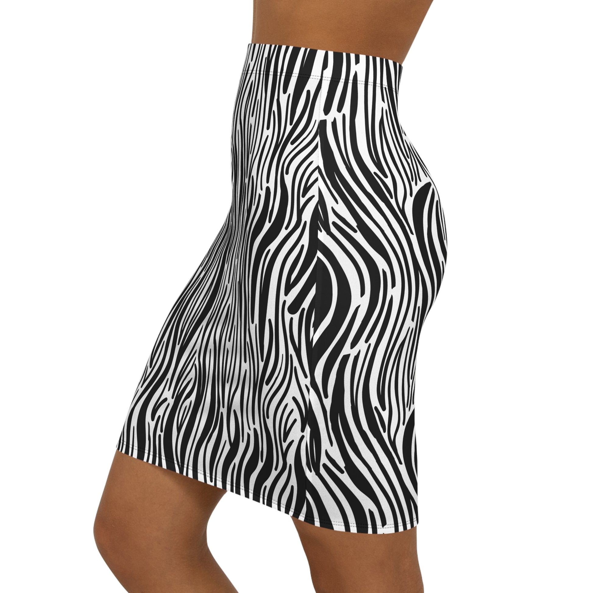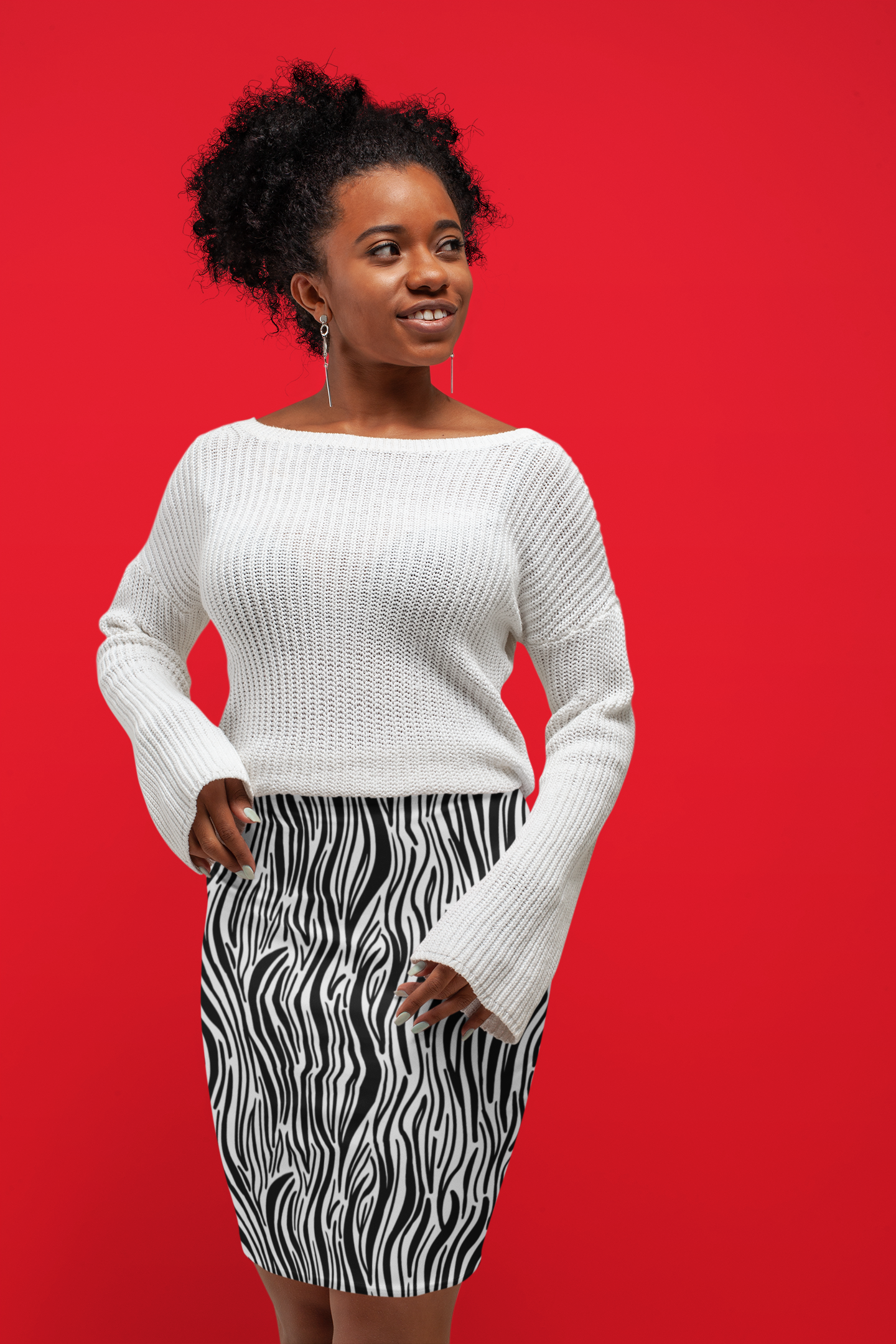 Women's Black & White Zebra Print Mid-Waist Pencil Skirt, Dress it Up or Dress it Down Zebra Print T-Shirt Skirt