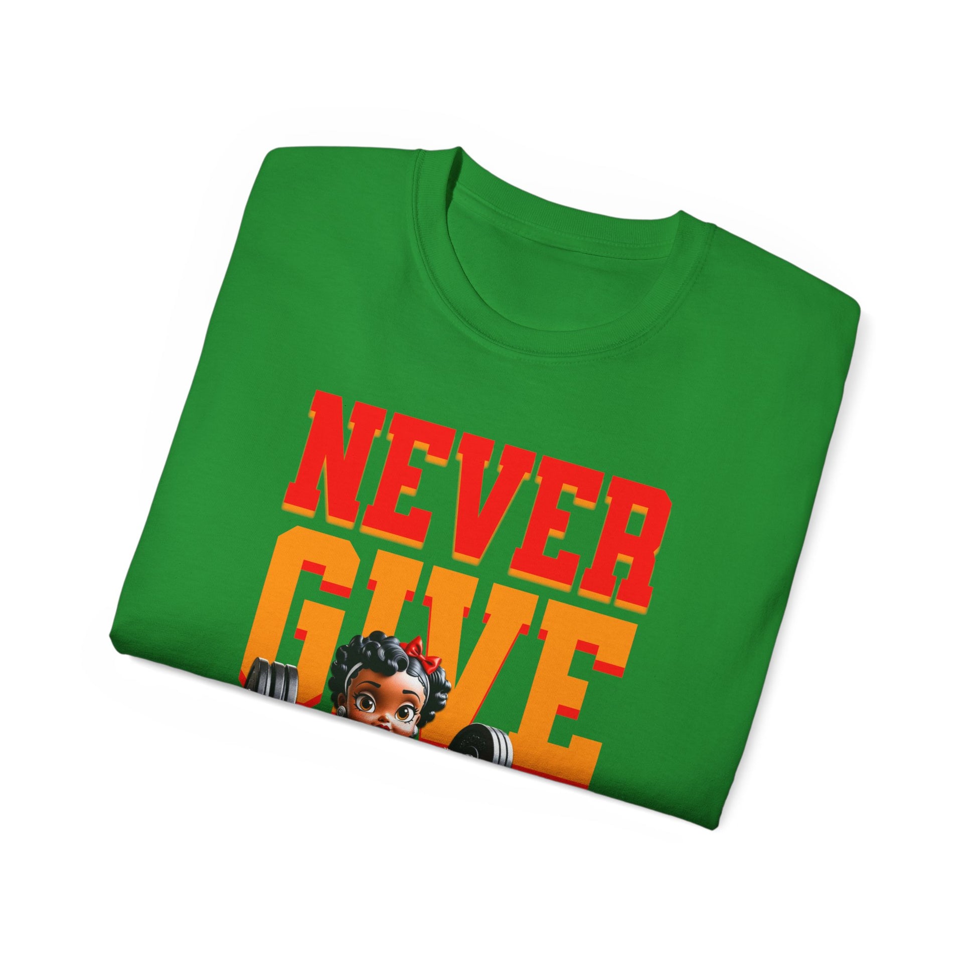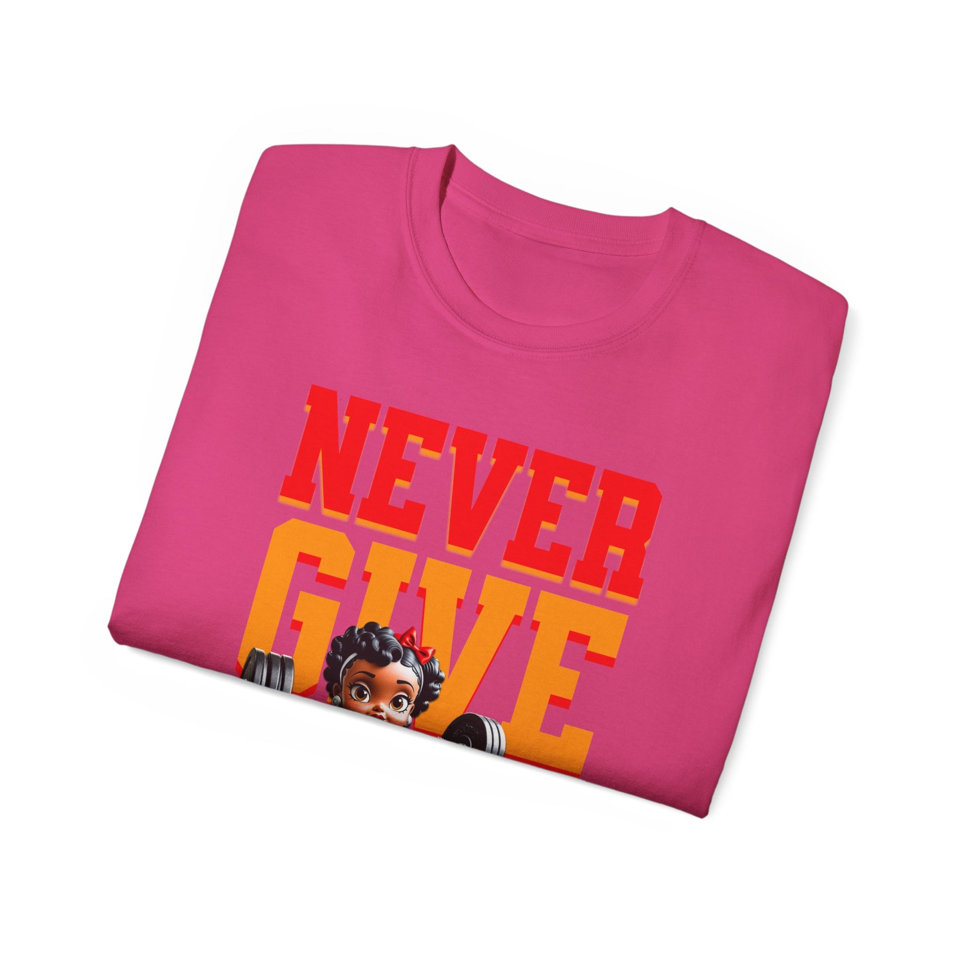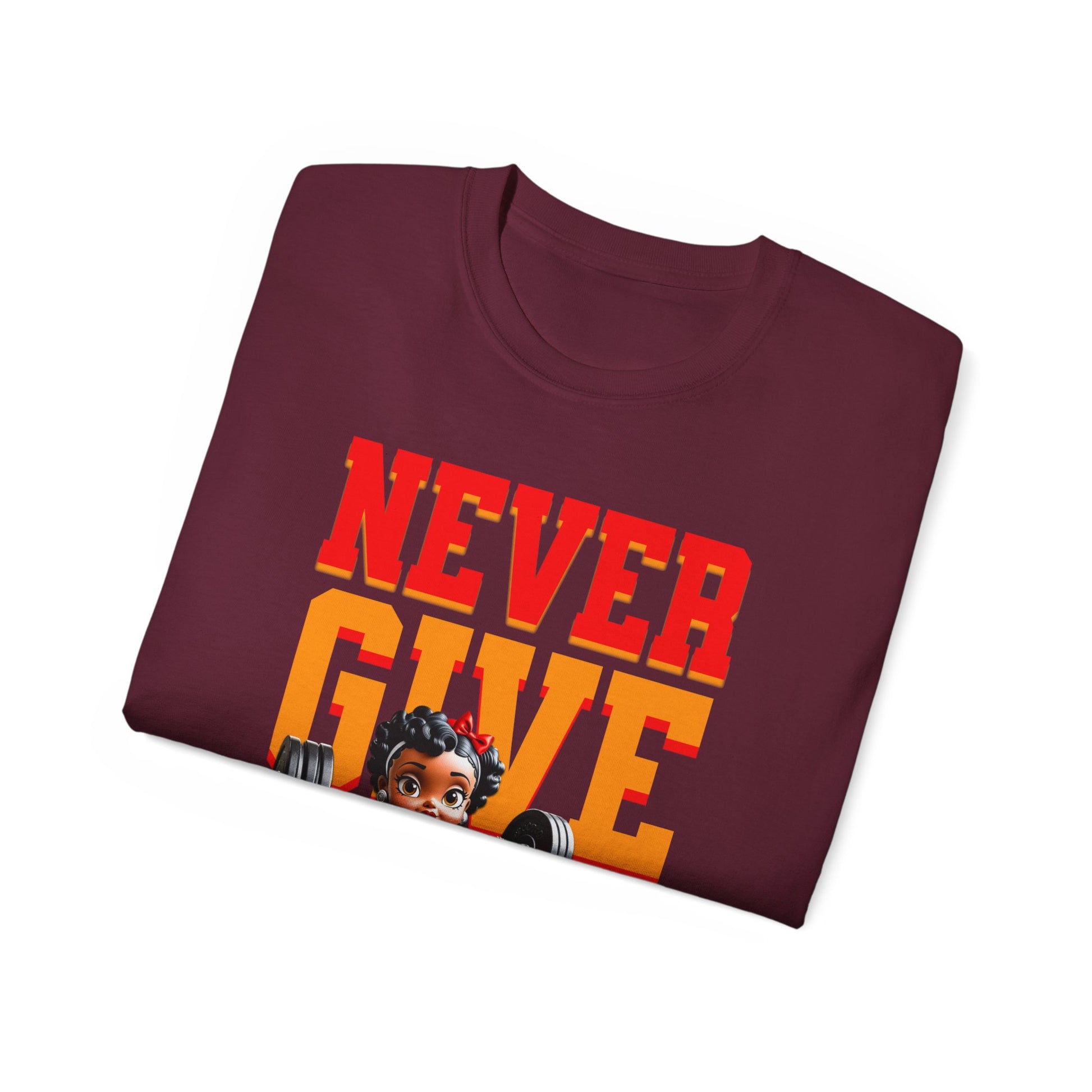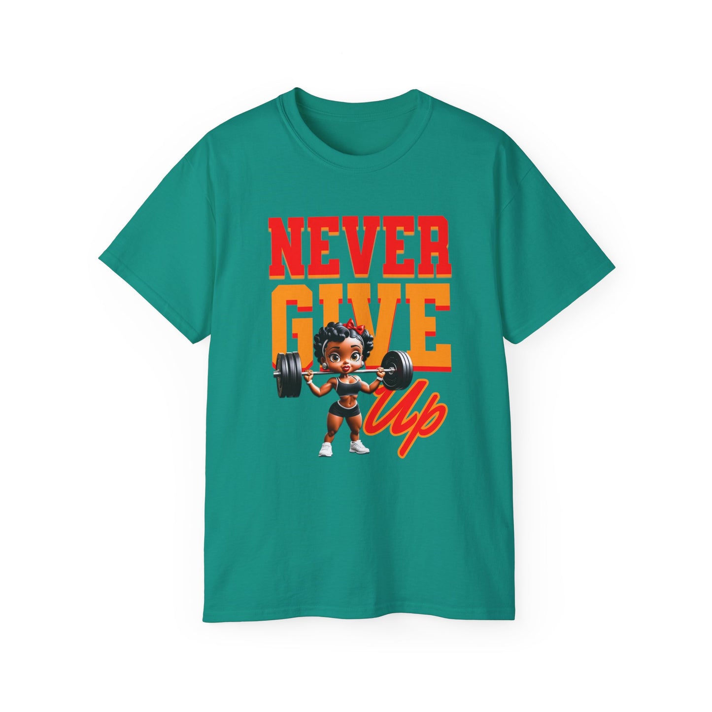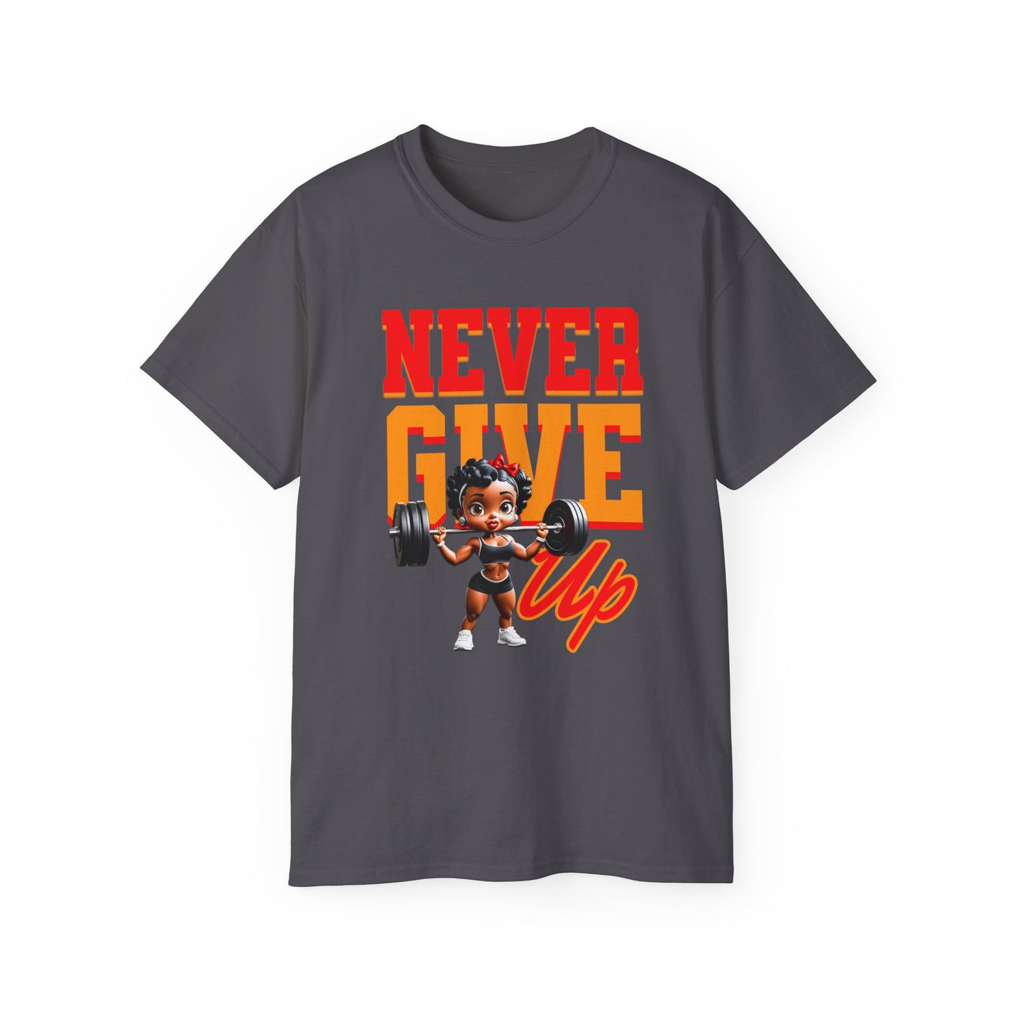 Women's Motivational Fitness Tee, Cute Betty Boop Workout Shirt, Ladies Gym Apparel, Never Give Up Shirt, Gift for Health Enthusiasts