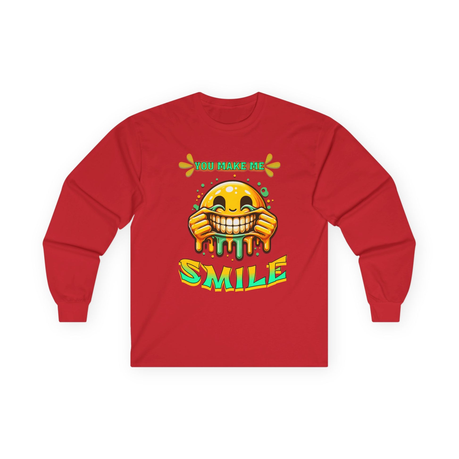 You Make Me Smile Long Sleeve Tee, Fun Graphic Shirt, Positive Vibes Clothing, Unisex Humor Tee, Gift for Friends, Casual Wear